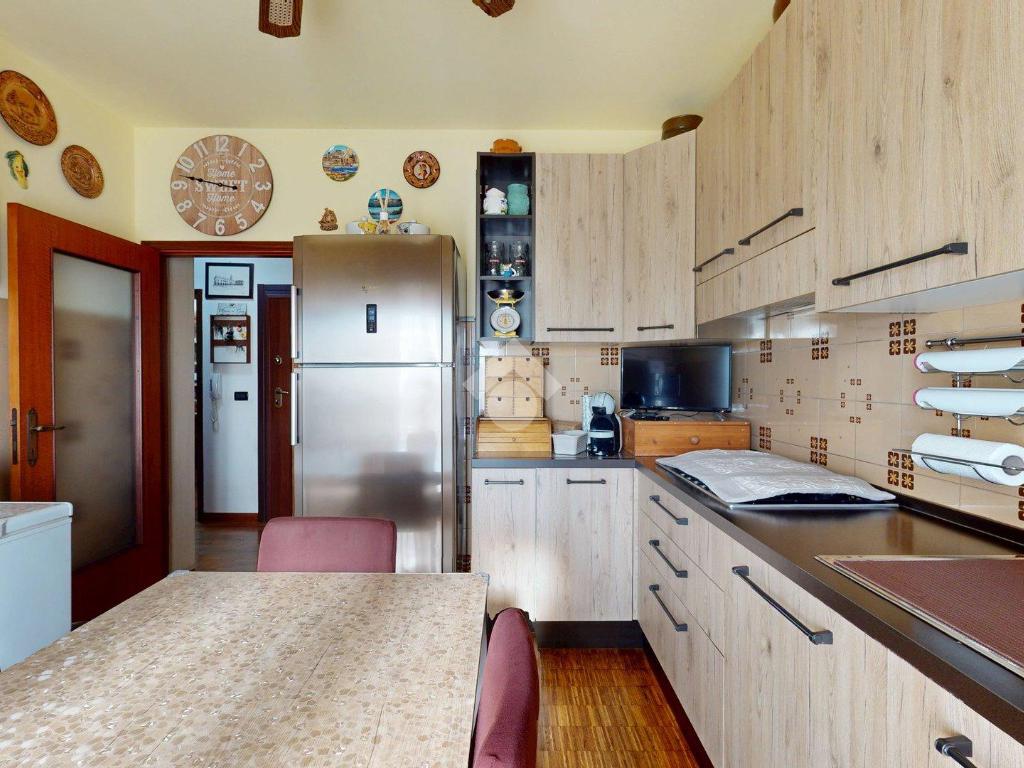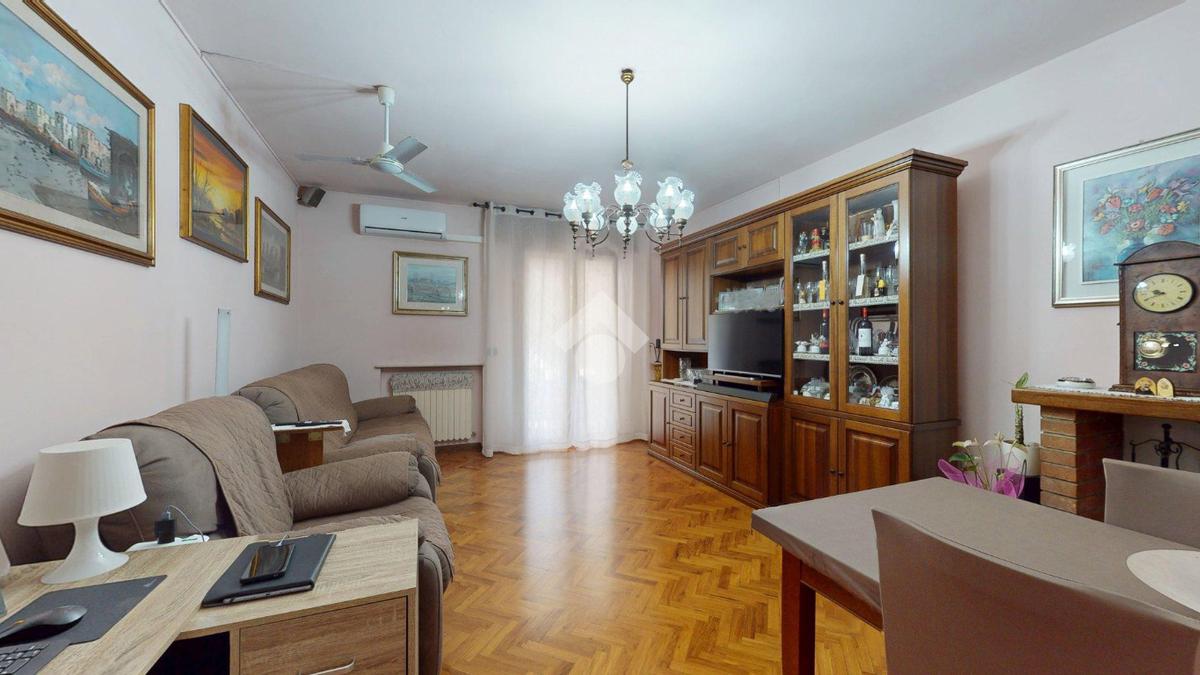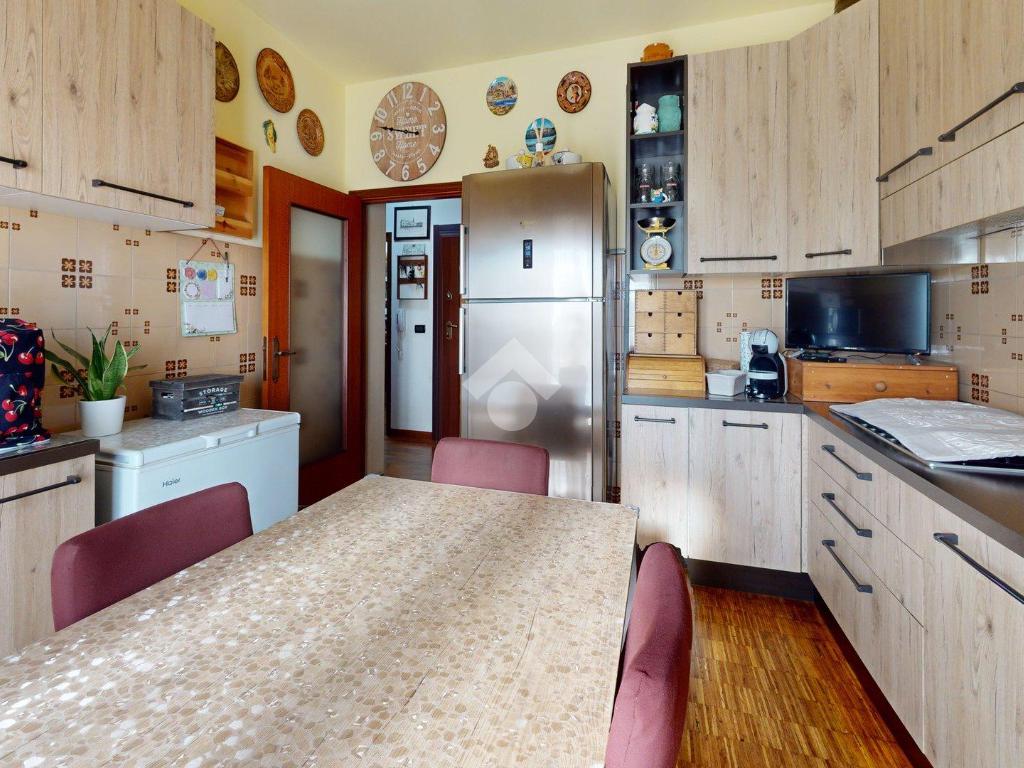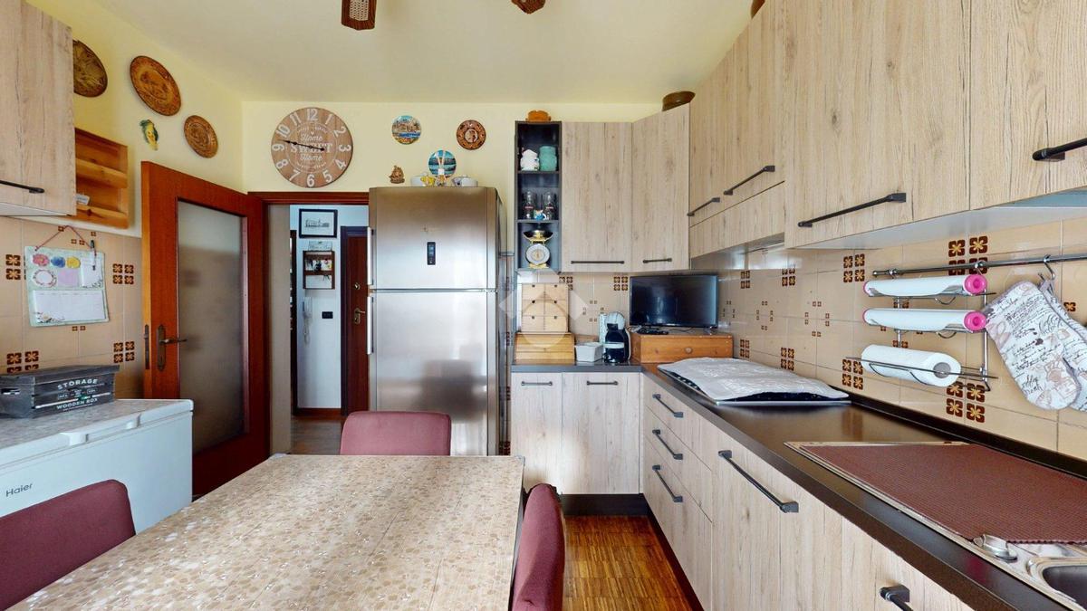Il soggiorno è ampio e si apre su un balcone regolare; la cucina è abitabile e ha anch'essa un proprio balcone. La zona notte offre tre camere vere (10, 11 e 14 mq), due bagni finestrati e un ripostiglio comodo.