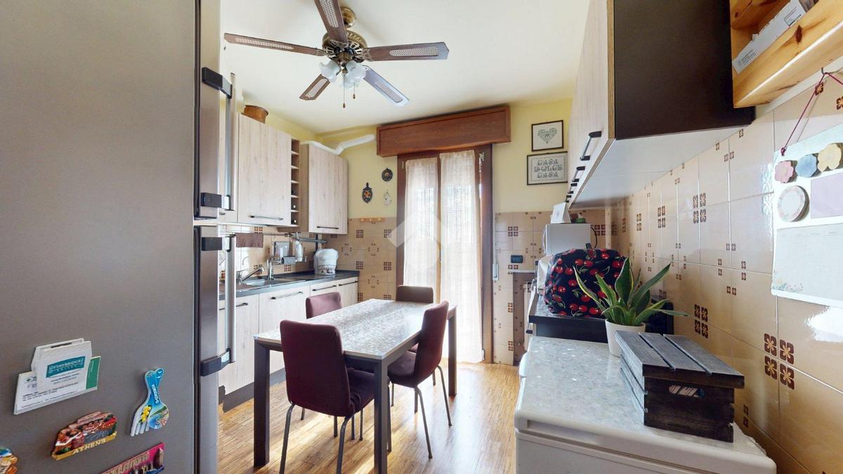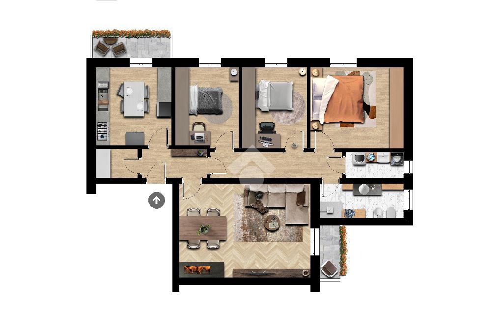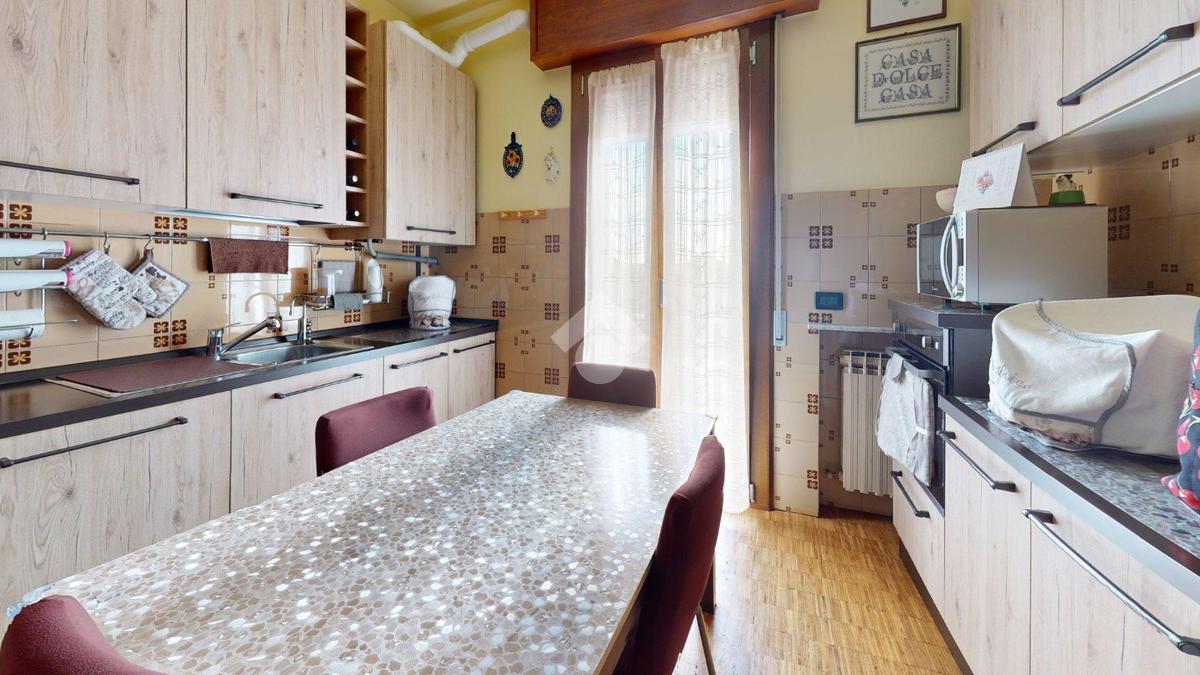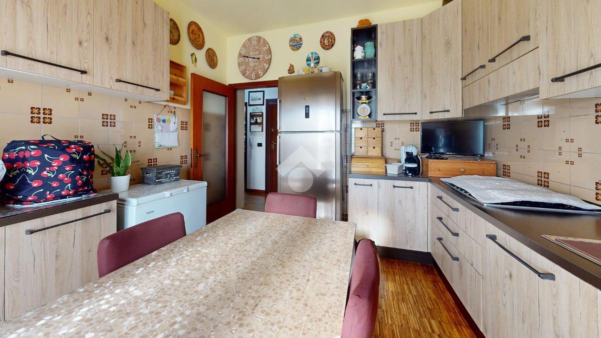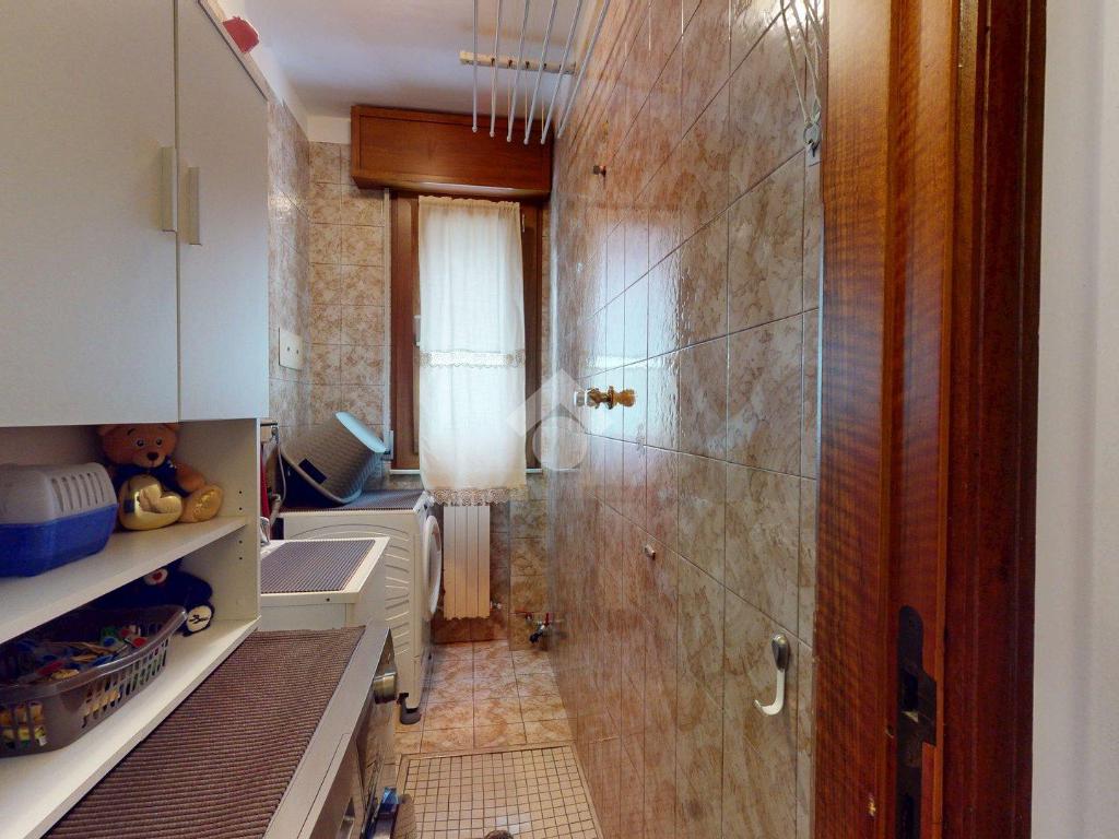 Il soggiorno è ampio e si apre su un balcone regolare; la cucina è abitabile e ha anch'essa un proprio balcone. La zona notte offre tre camere vere (10, 11 e 14 mq), due bagni finestrati e un ripostiglio comodo.