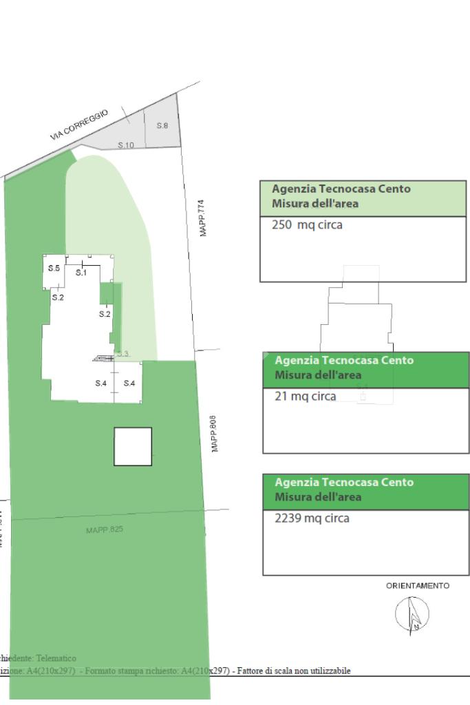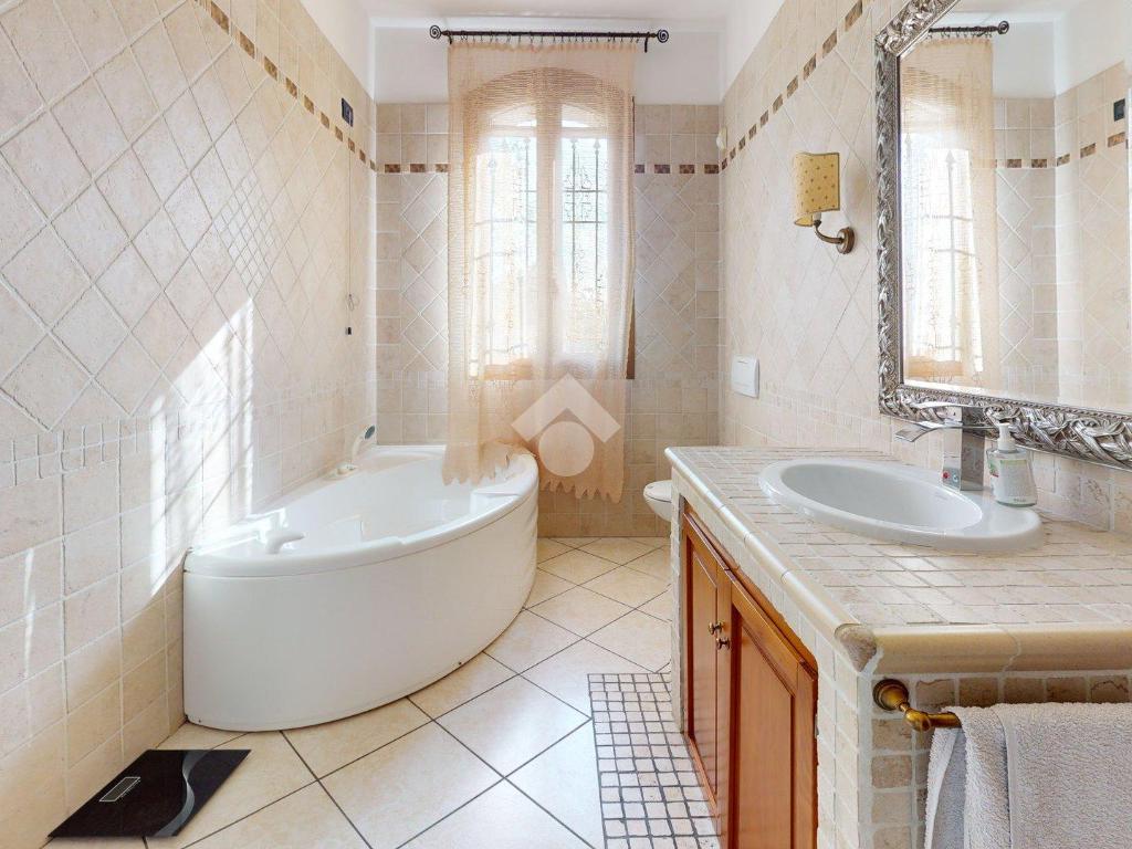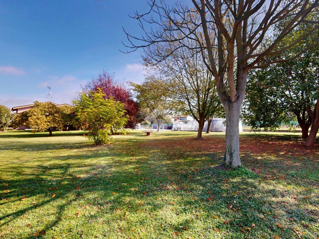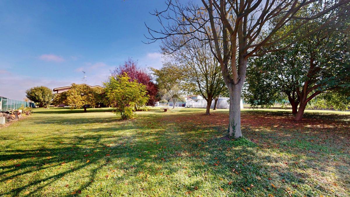 Sul lato, il giardino privato accompagna la casa fino al confine e poi si apre verso il parco retrostante, quasi a prolungarne la quiete, per complessivi 2.239 m² di area esterna.