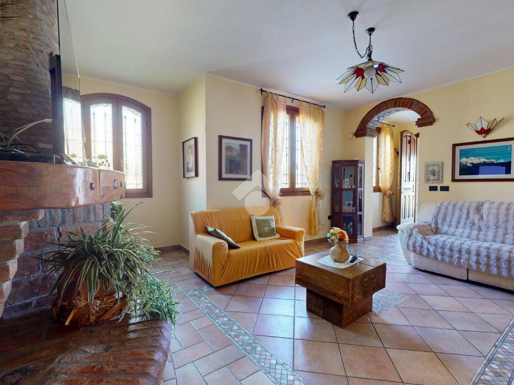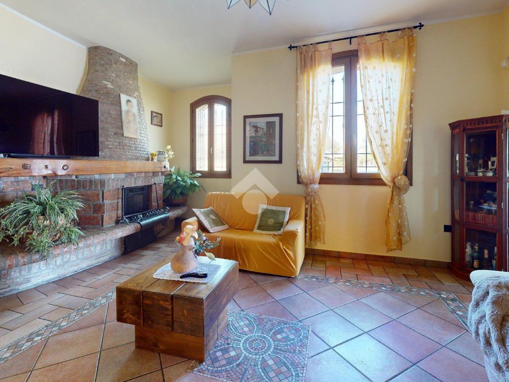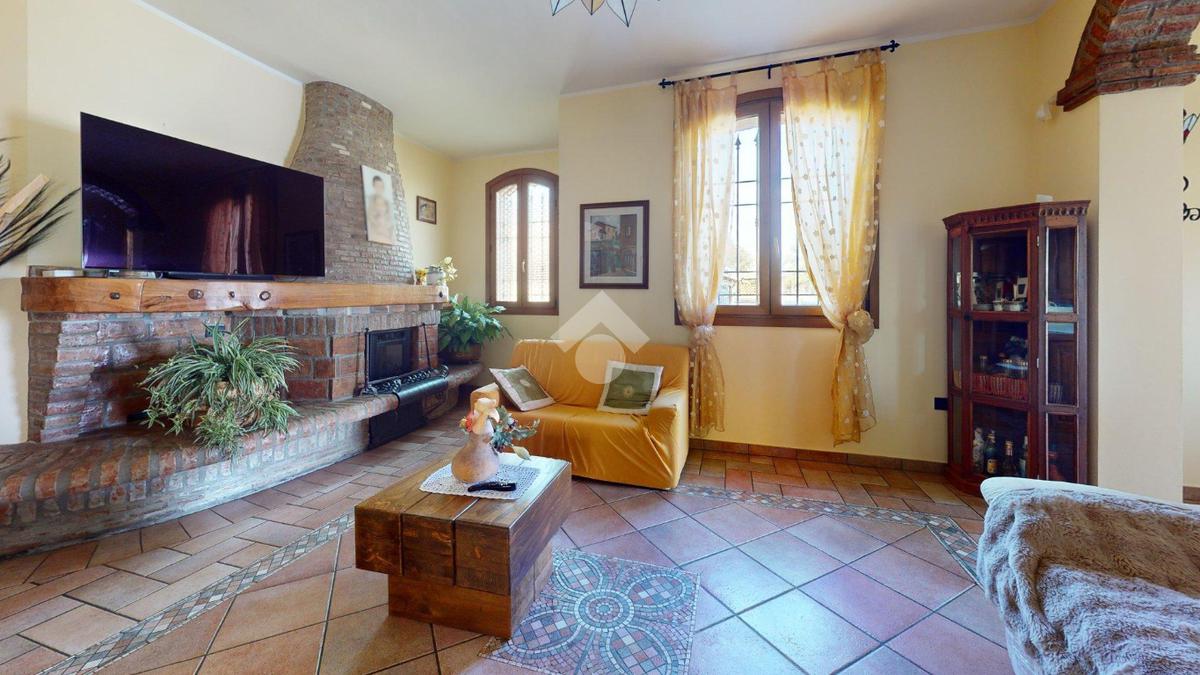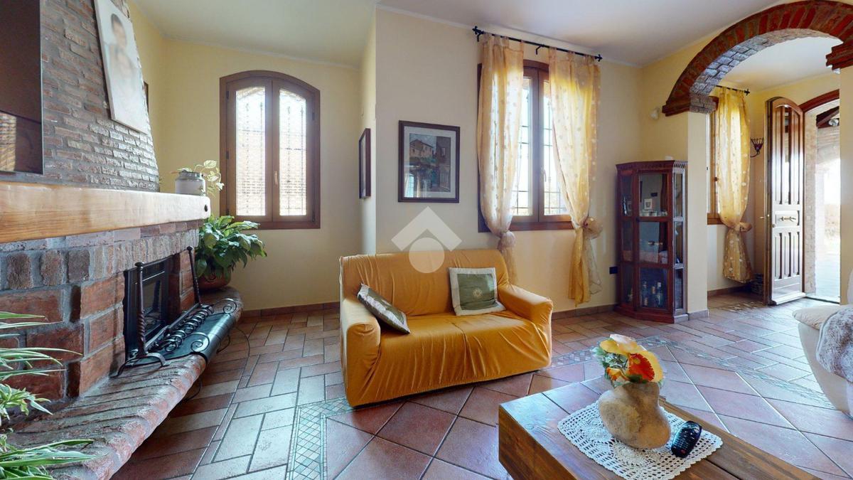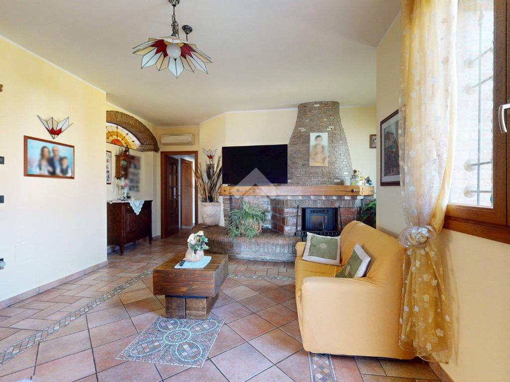 Superata la soglia, si entra in un ampio soggiorno con camino, luminoso e centrale: il cuore della casa.