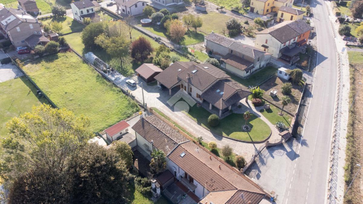 Completano la proprietà un garage per due auto, una grande cantina esterna e posti auto.