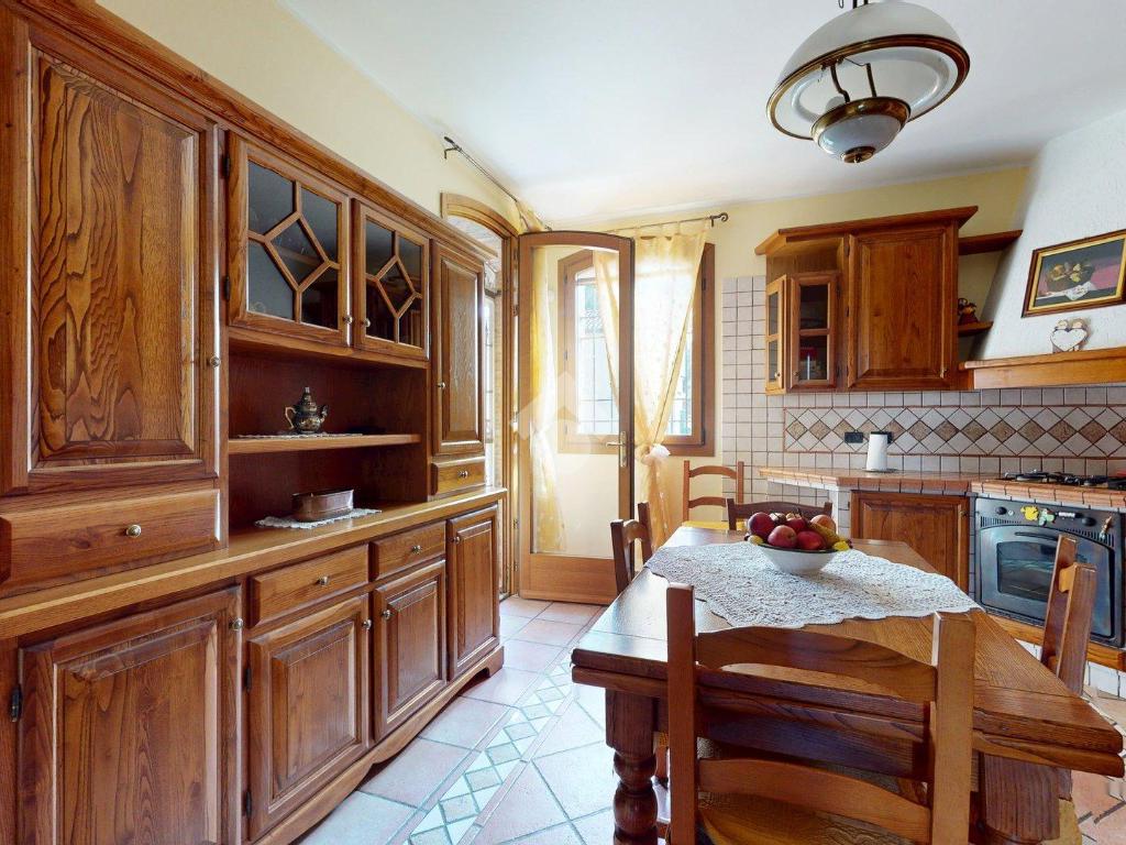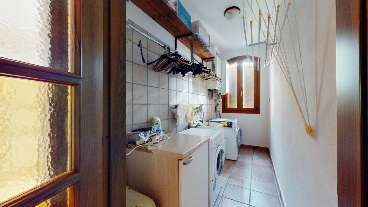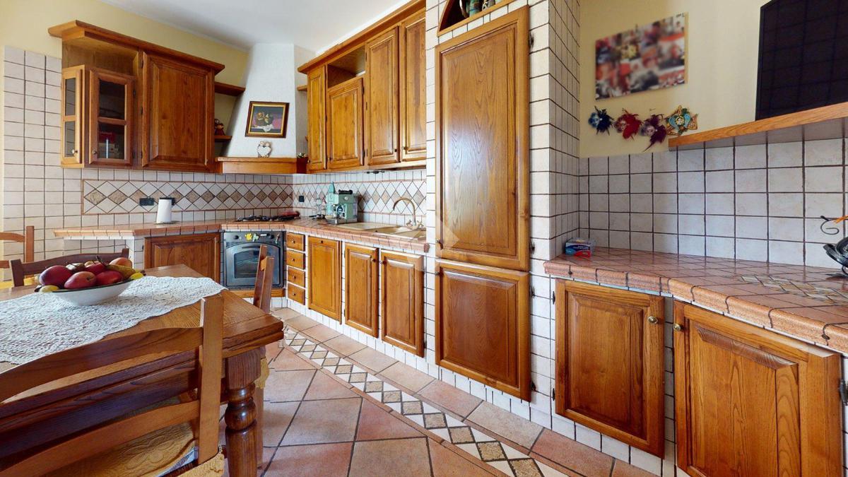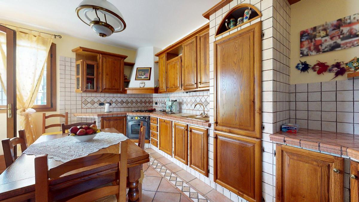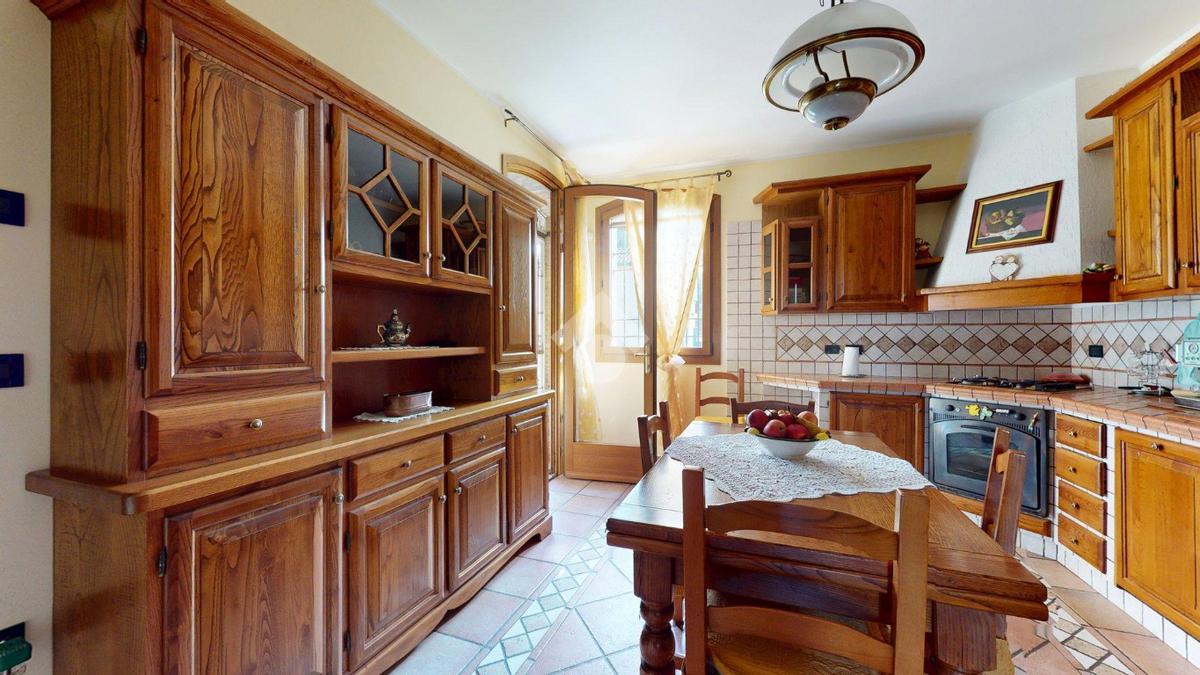 Da qui si accede alla cucina abitabile, separata ma vicina, con affaccio su una porzione di giardino di circa 20 mq - uno spazio privato che protegge la vista e la quiete, separandola con naturalezza dall’altra porzione della villa.