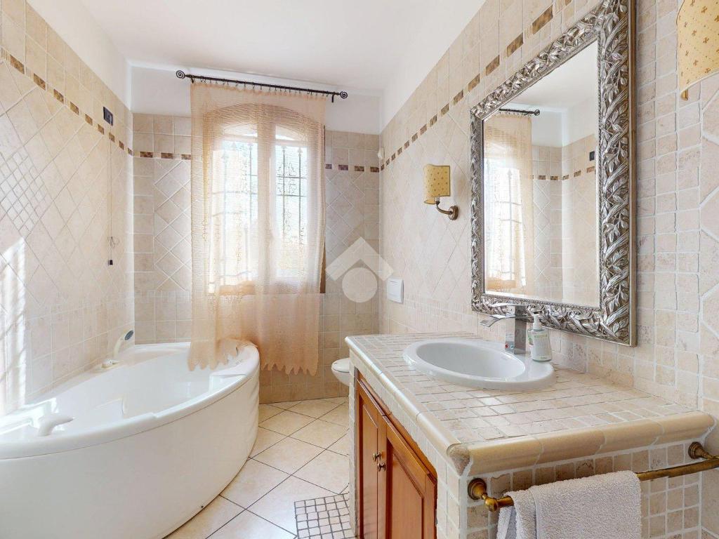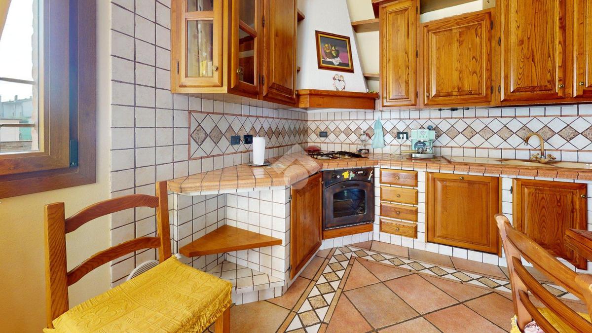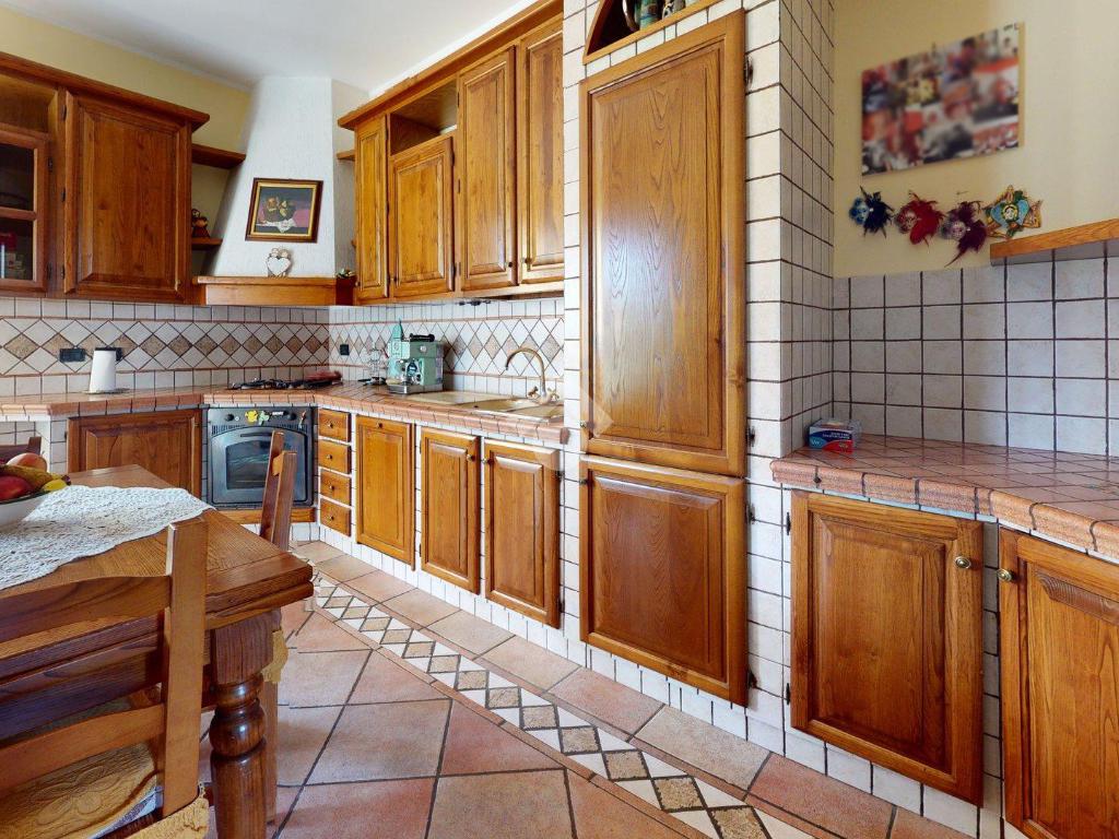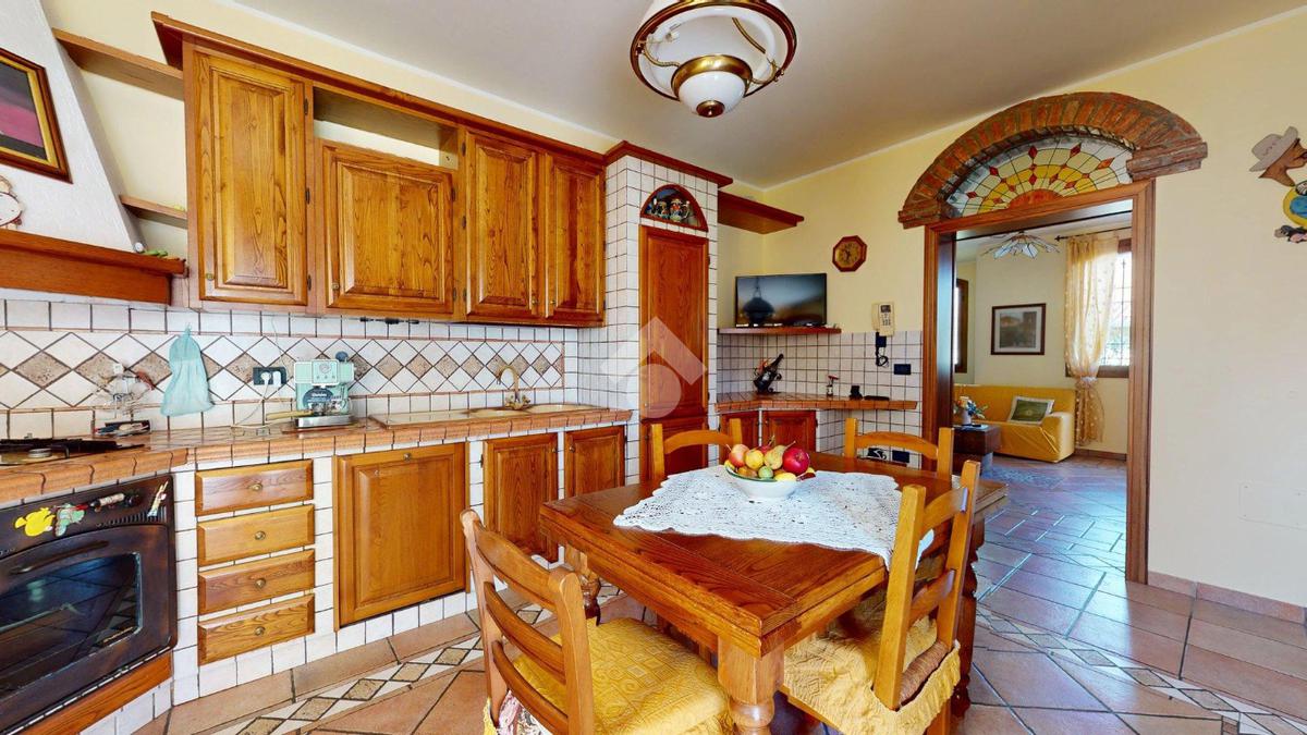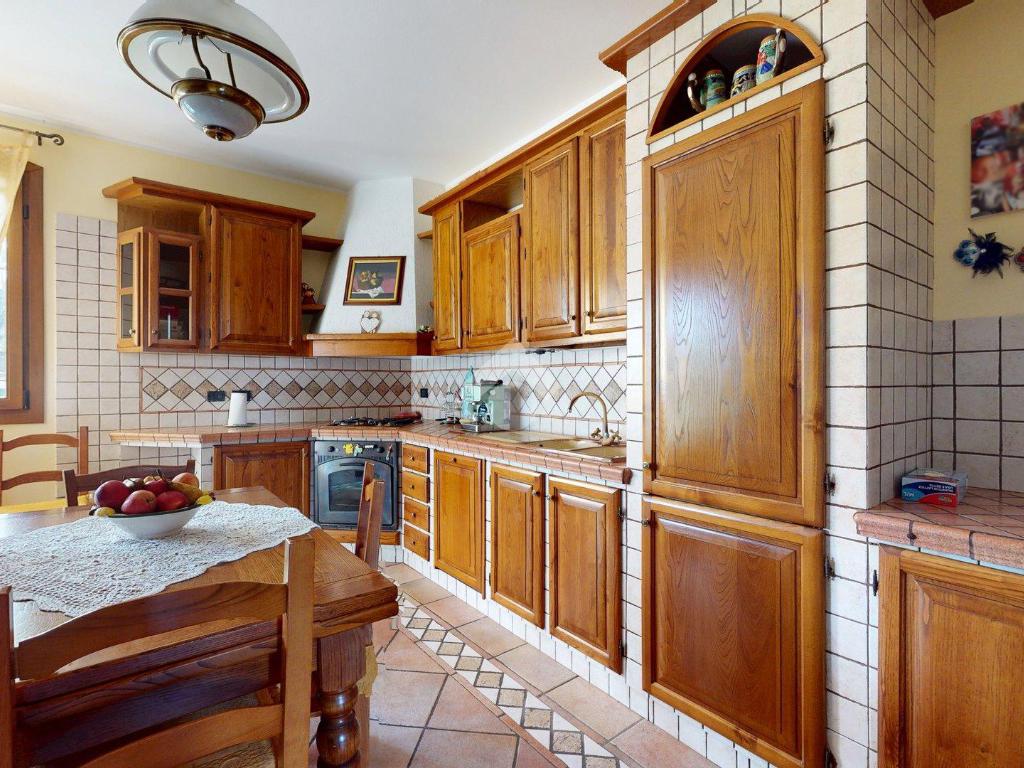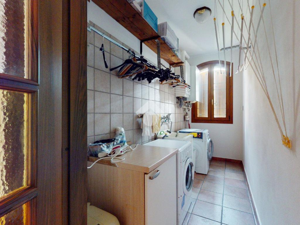 Da qui si accede alla cucina abitabile, separata ma vicina, con affaccio su una porzione di giardino di circa 20 mq - uno spazio privato che protegge la vista e la quiete, separandola con naturalezza dall’altra porzione della villa.