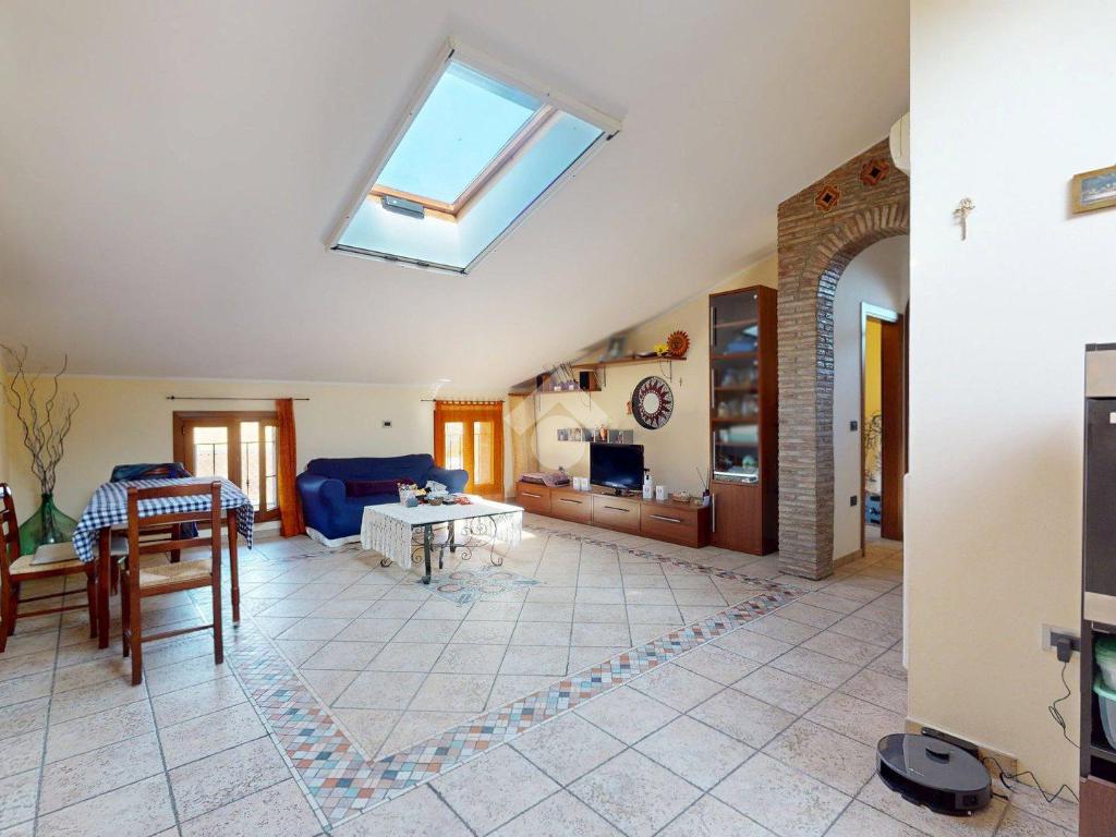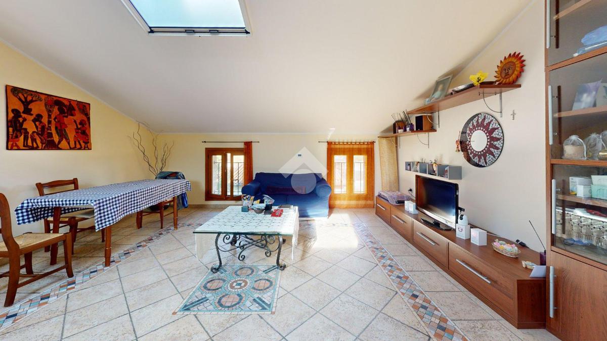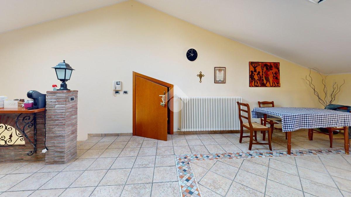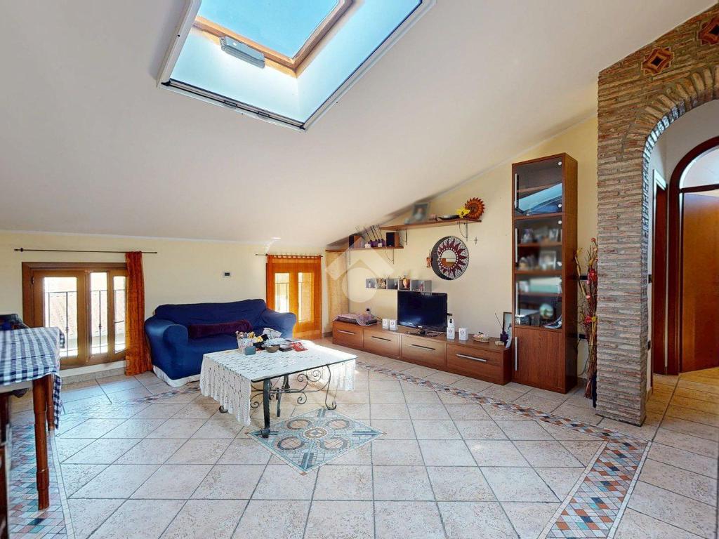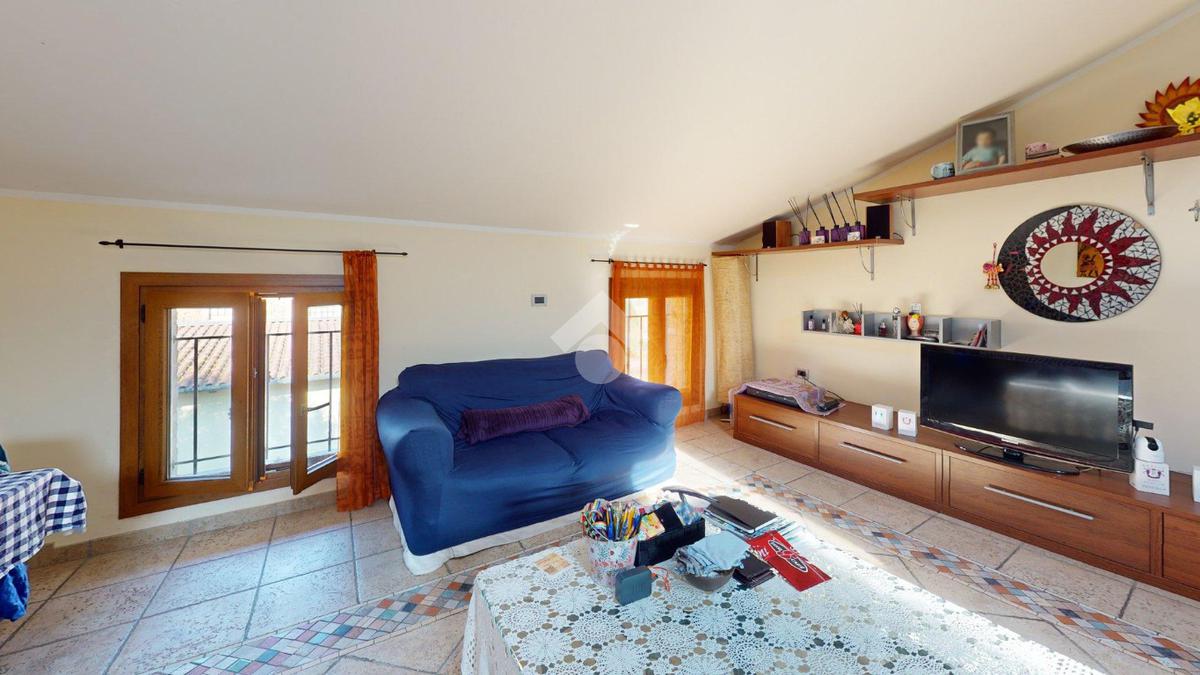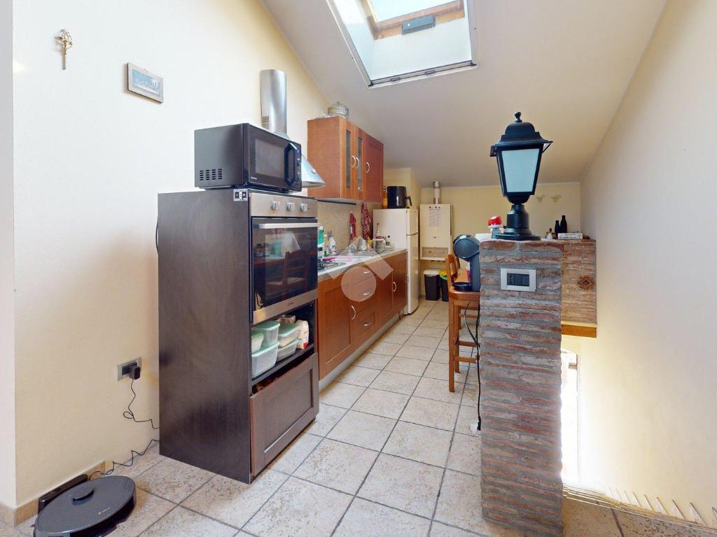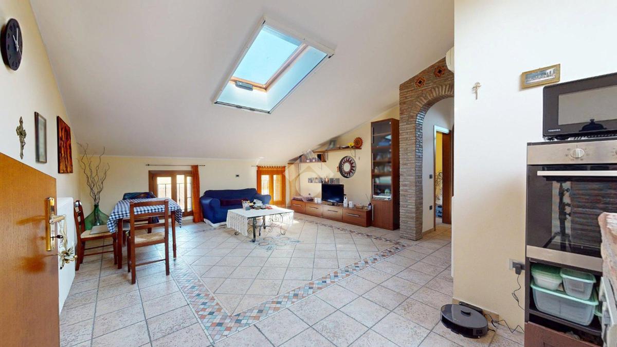 Dal soggiorno una piccola porticina conduce a un sottotetto utile, perfetto per riporre oggetti e ricordi – discreto, funzionale, invisibile ma prezioso nella vita di ogni giorno.