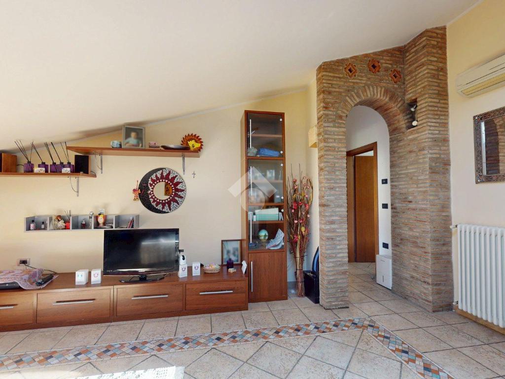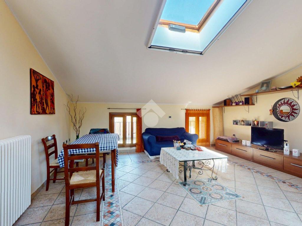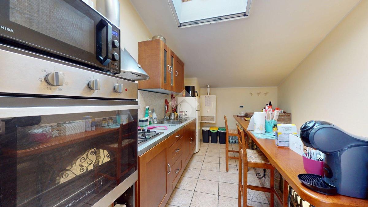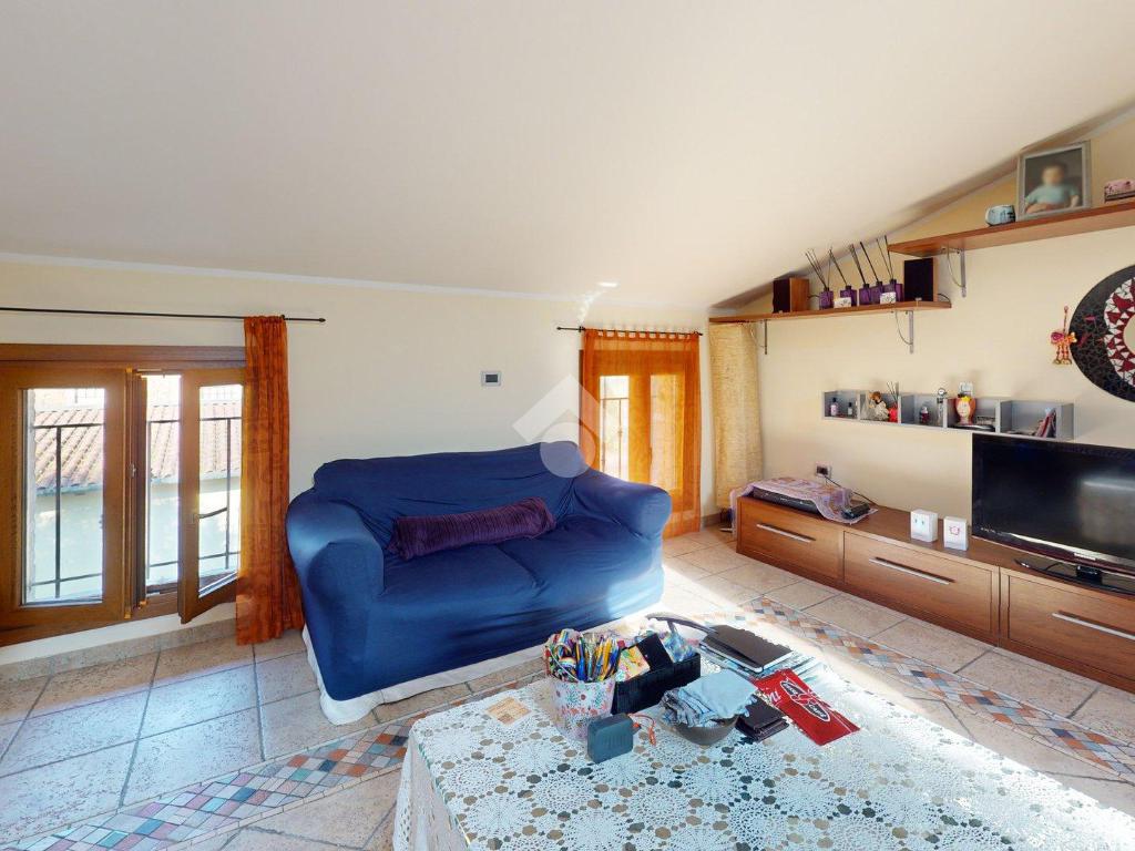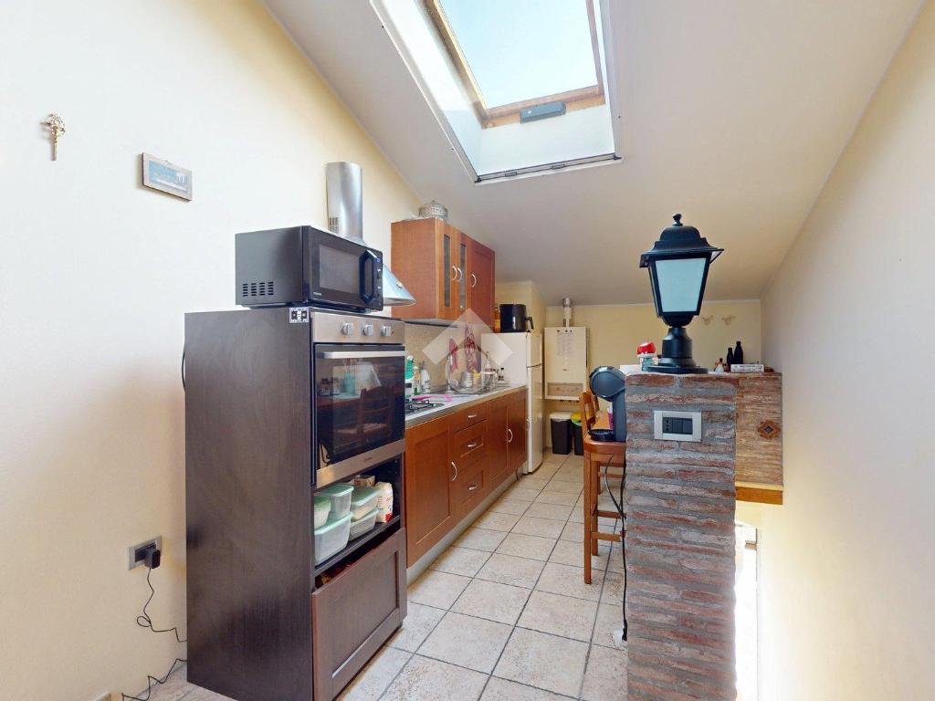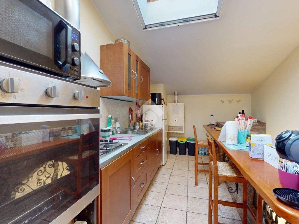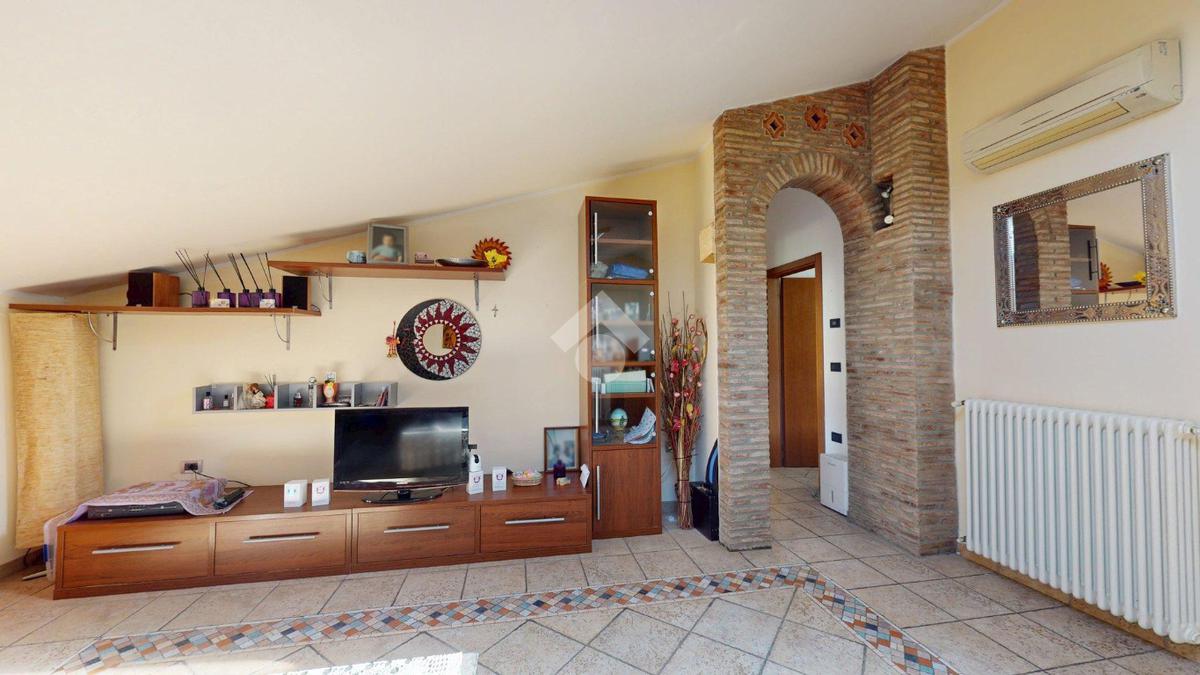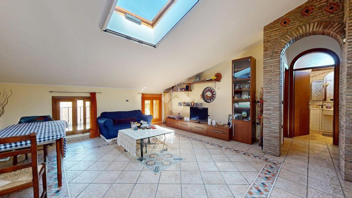 Dal soggiorno una piccola porticina conduce a un sottotetto utile, perfetto per riporre oggetti e ricordi – discreto, funzionale, invisibile ma prezioso nella vita di ogni giorno.