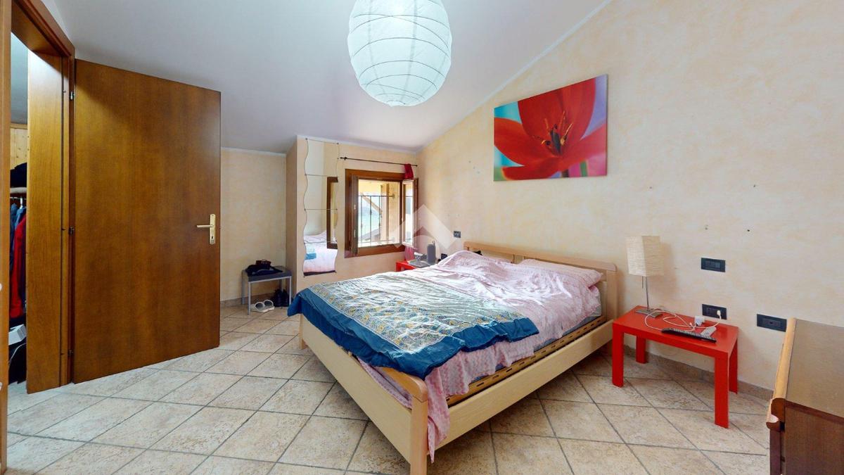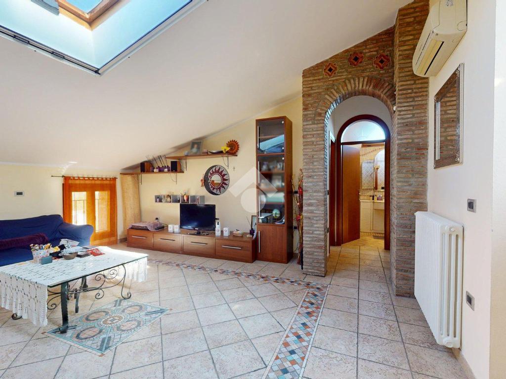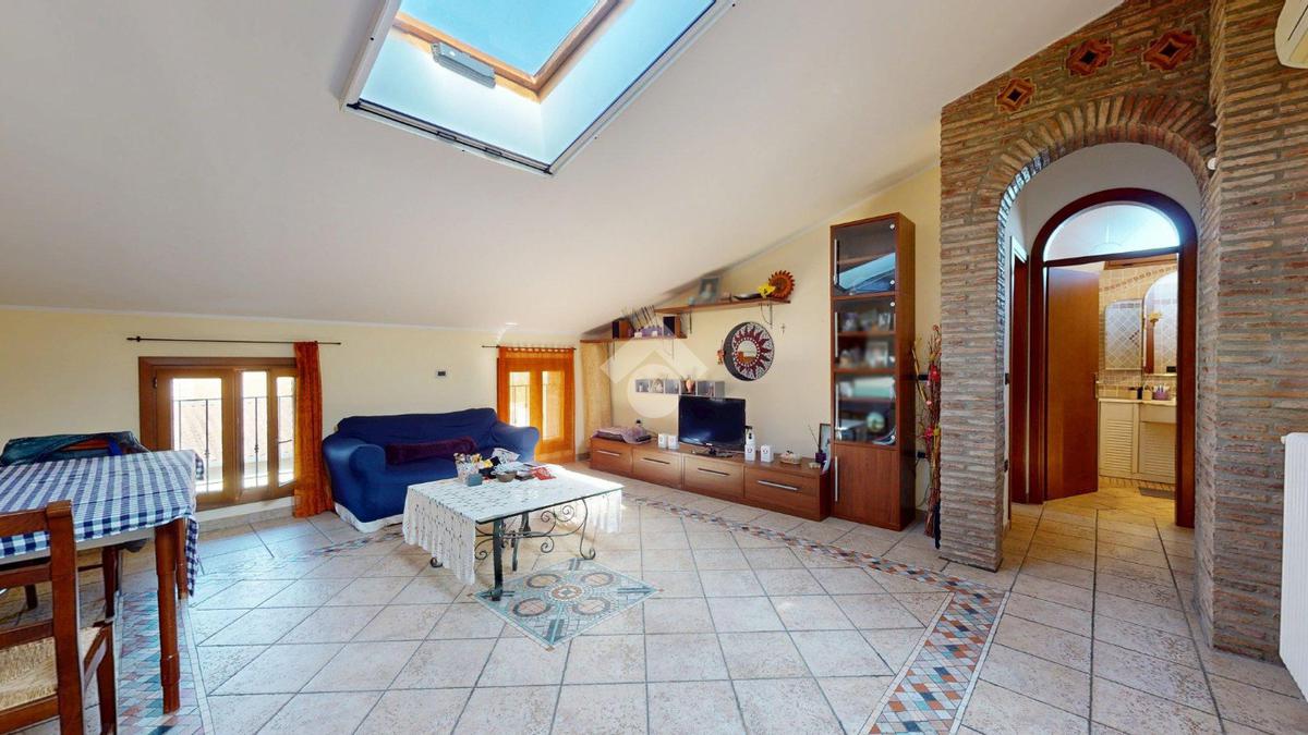 Una mansarda abitabile, con solaio in laterocemento intonacato, pareti chiare e finestre che catturano la luce della campagna di Casumaro.