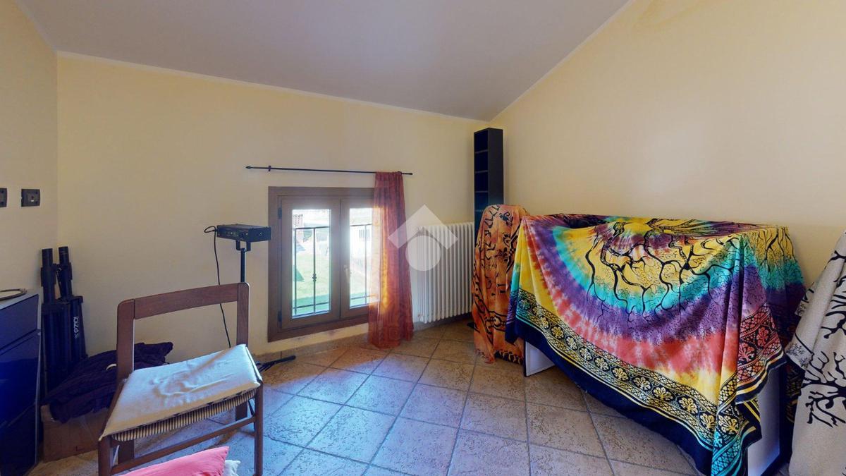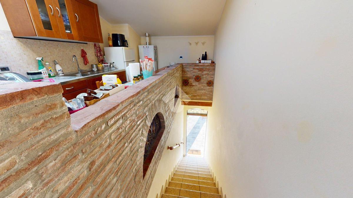 Dal lato della casa una porta introduce a una scala privata, che conduce al piano superiore interamente mansardato.