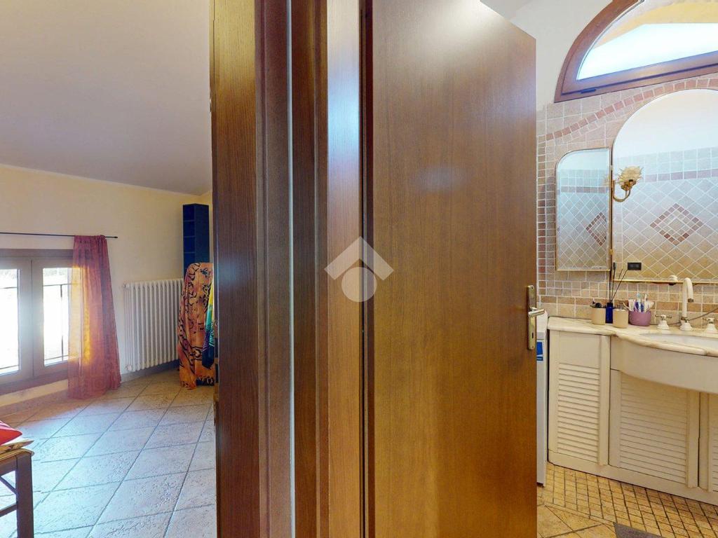 La porzione autonoma abita il piano sottotetto: si posa sopra parte dell’altra metà della villa come un livello distinto, vicino ma separato, con luce e silenzio propri.